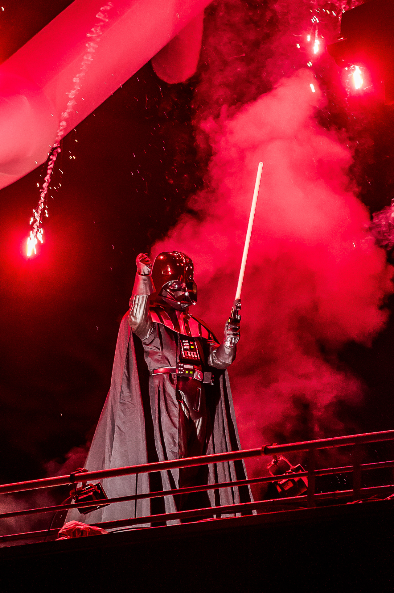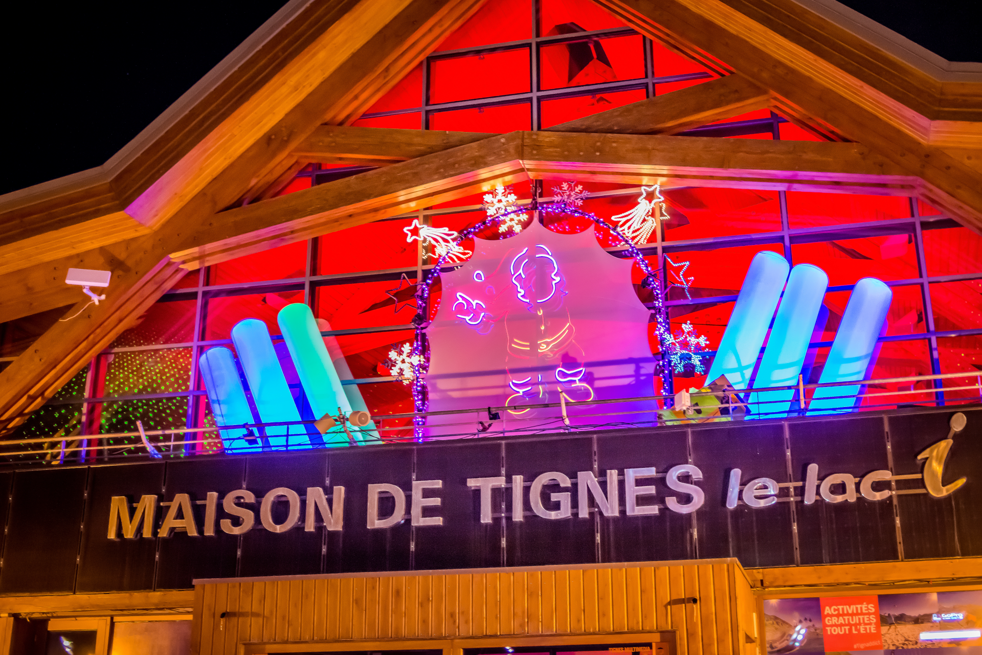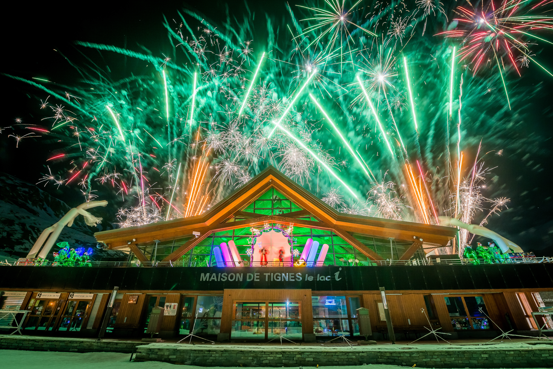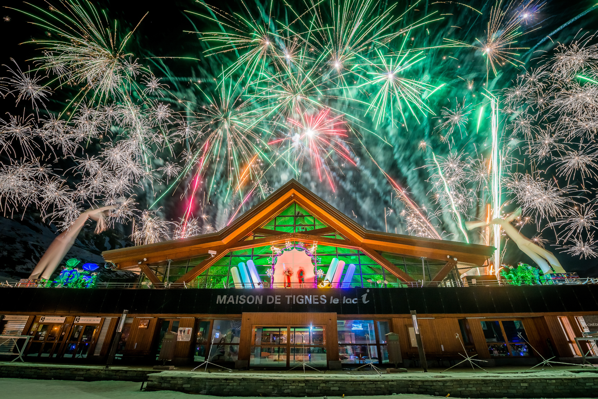 - La première partie s’est déroulée sur la maison de Tignes le lac, mêlant pyrotechnie, jeux de scène, éclairages, laser lucioles et pantins géant.